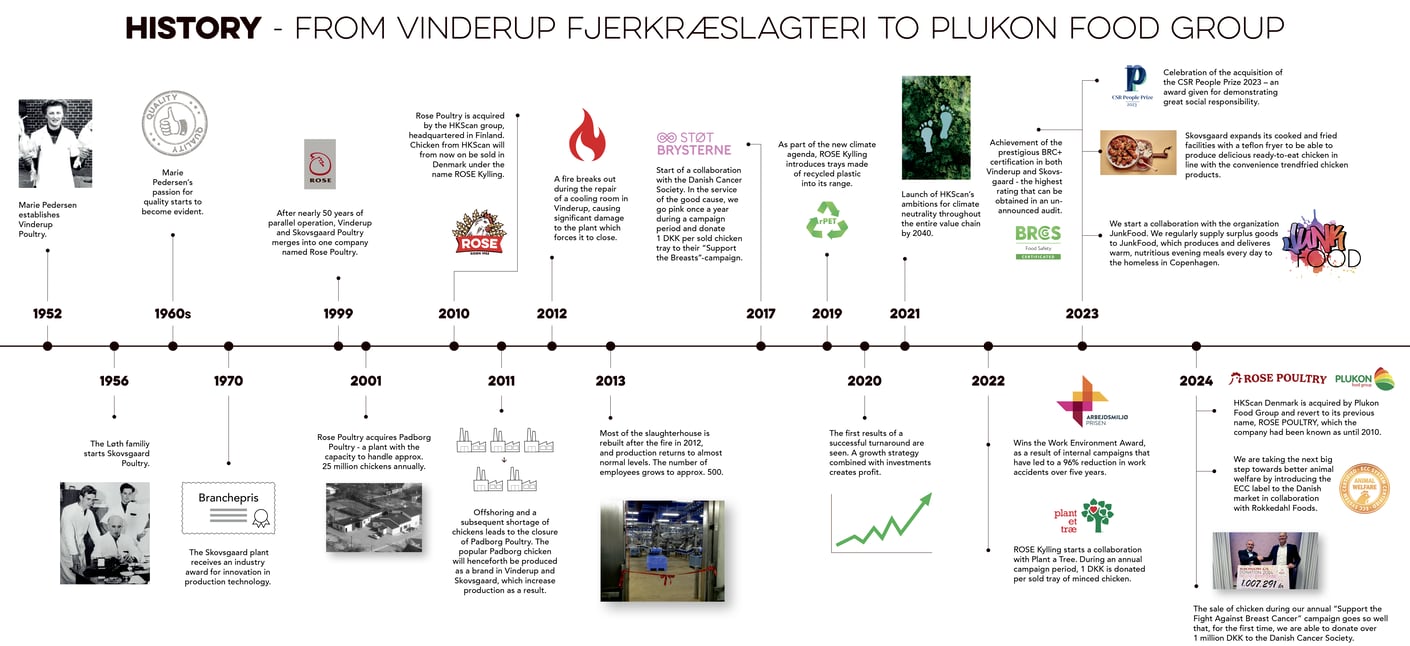 ROSE Poultry is Denmark’s oldest poultry brand. Our dedication to quality, consideration and animal welfare stems from our founder, Marie Pedersen – also called ‘Chicken Marie’. We have produced Danish chicken since 1952 - get a taste of our long history here